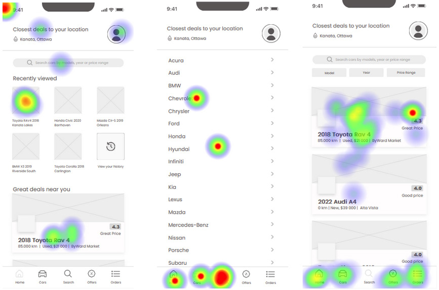 We then ran the tests with another team, reviewed results and heatmaps, and used the findings to decide what to refine before moving into hi-fi.